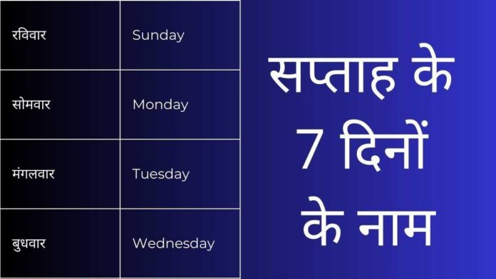 आप सप्ताह के 7 दिनों के नाम हिंदी एवं अंग्रेजी (7 days name) भाषा में नीचे देख सकते है।